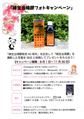 「婦宝当帰膠フォトキャンペーン」のご案内をさせてください!